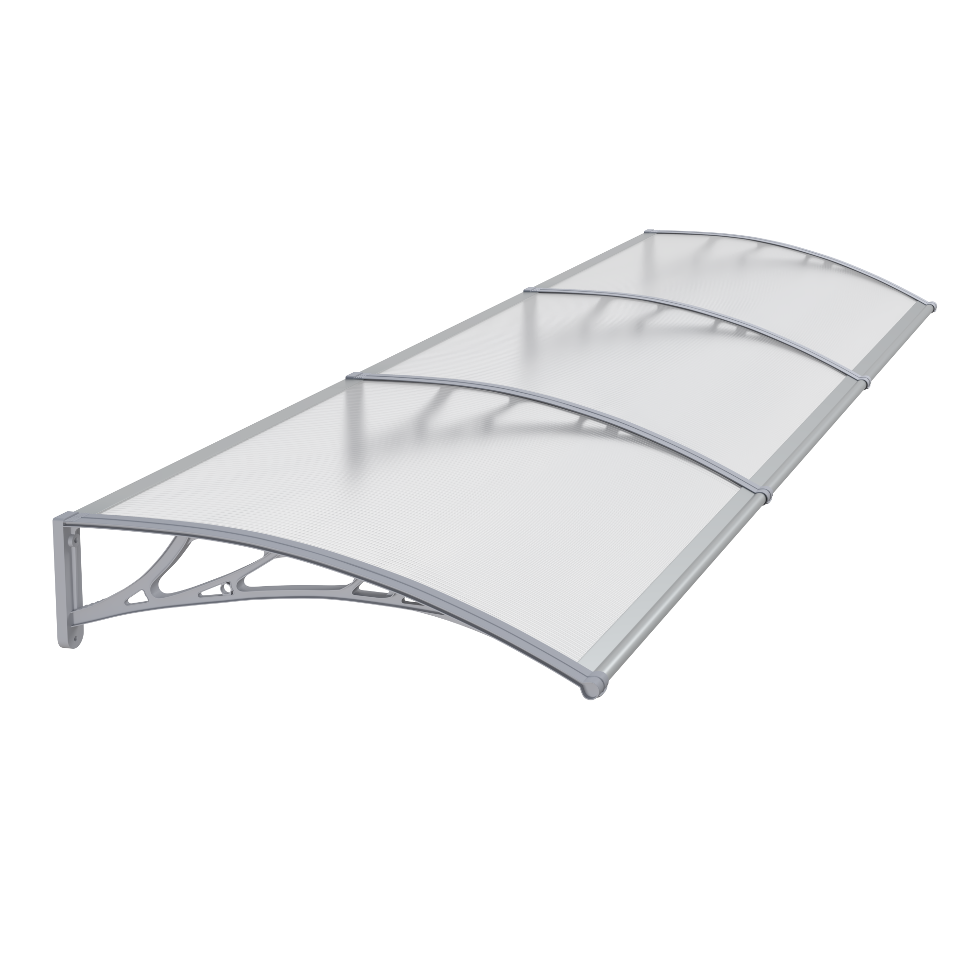 Copertină PREMIUM de ușă 300x80cm / marchiză / adăpost / acoperiș - brațe gri - placă 6mm întreagă transparent