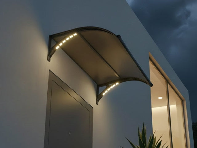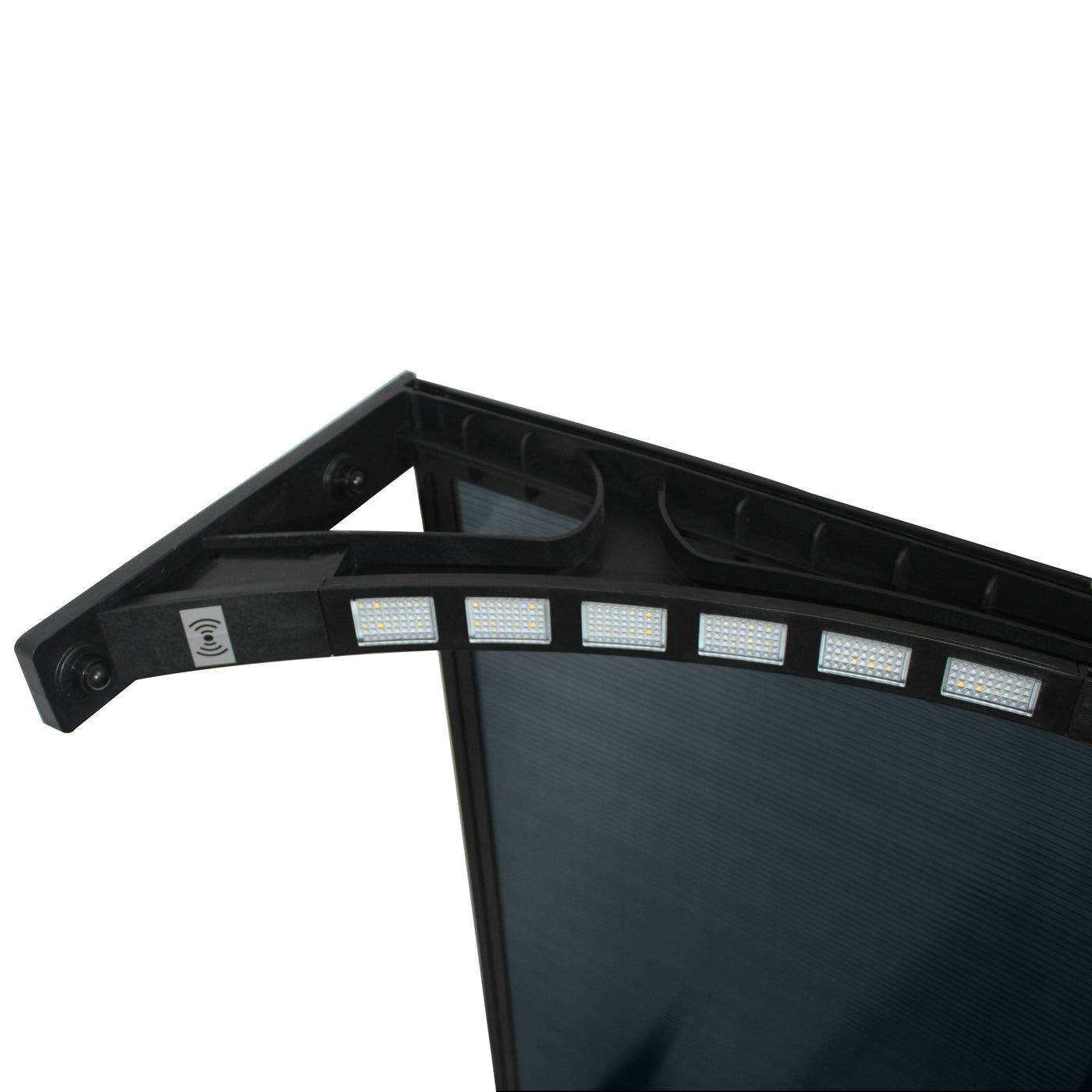 Această copertină de ușă PREMIUM LUMI cu senzor de lumină și panou solar este o soluție modernă și practică, care nu doar că va înfrumuseța aspectul proprietății dvs., dar va proteja eficient ușa, fereastra, balconul sau terasa împotriva precipitațiilor, fără a bloca lumina naturală.